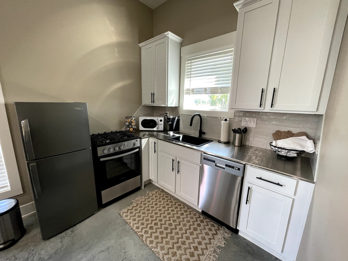 Fern Cottage is on rear of our property with private entrance & outdoor spaces which include seating, fire pit. Front porch has a swing. It is fully furnished There is an under counter fridge in the kitchen and full size fridge located outside your bedroom door in garage. Off street parking provided. NO smoking unit. No exceptions. No more than 2 pets and no larger than 50 pounds. NO AGGRESSIVE PETS. There is a $25 pet fee please be courteous and pay when reserving