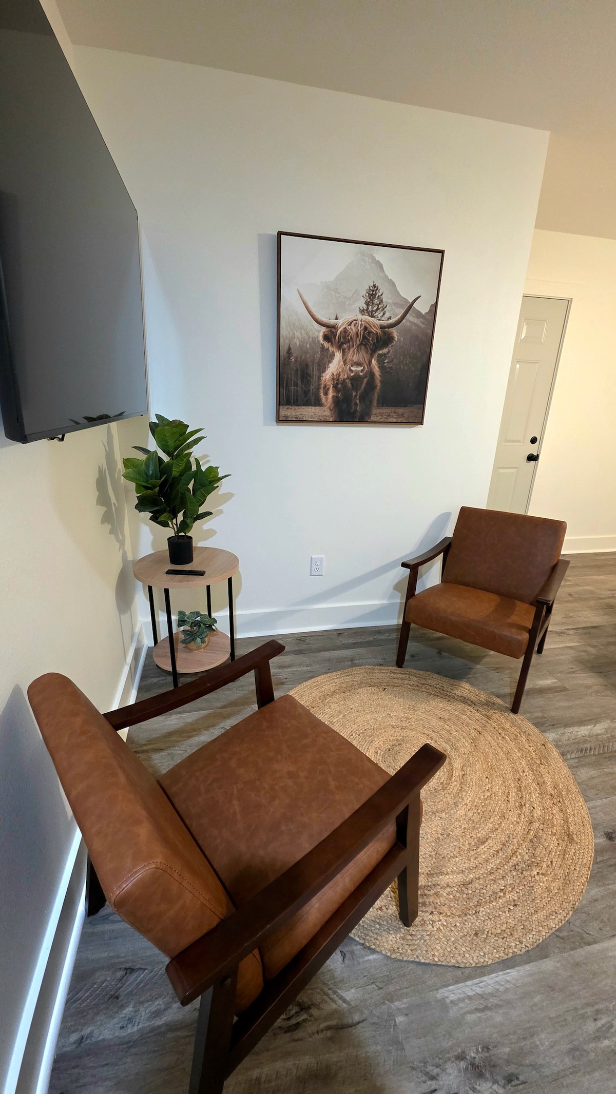 This charming home offers a serene retreat suitable for singles, couples, or a small family, welcoming pets with open arms. Nestled within a spacious 0.8-acre lot, it features a main bedroom with a queen bed, a full bath, & a walk-in closet. The second bedroom is a modern office. The third room serves as a dedicated workout area, boasting a treadmill, exercise bike, hand weights, & a yoga mat. A twin bed was added to this room after photos were taken. A portable playpen is also available.