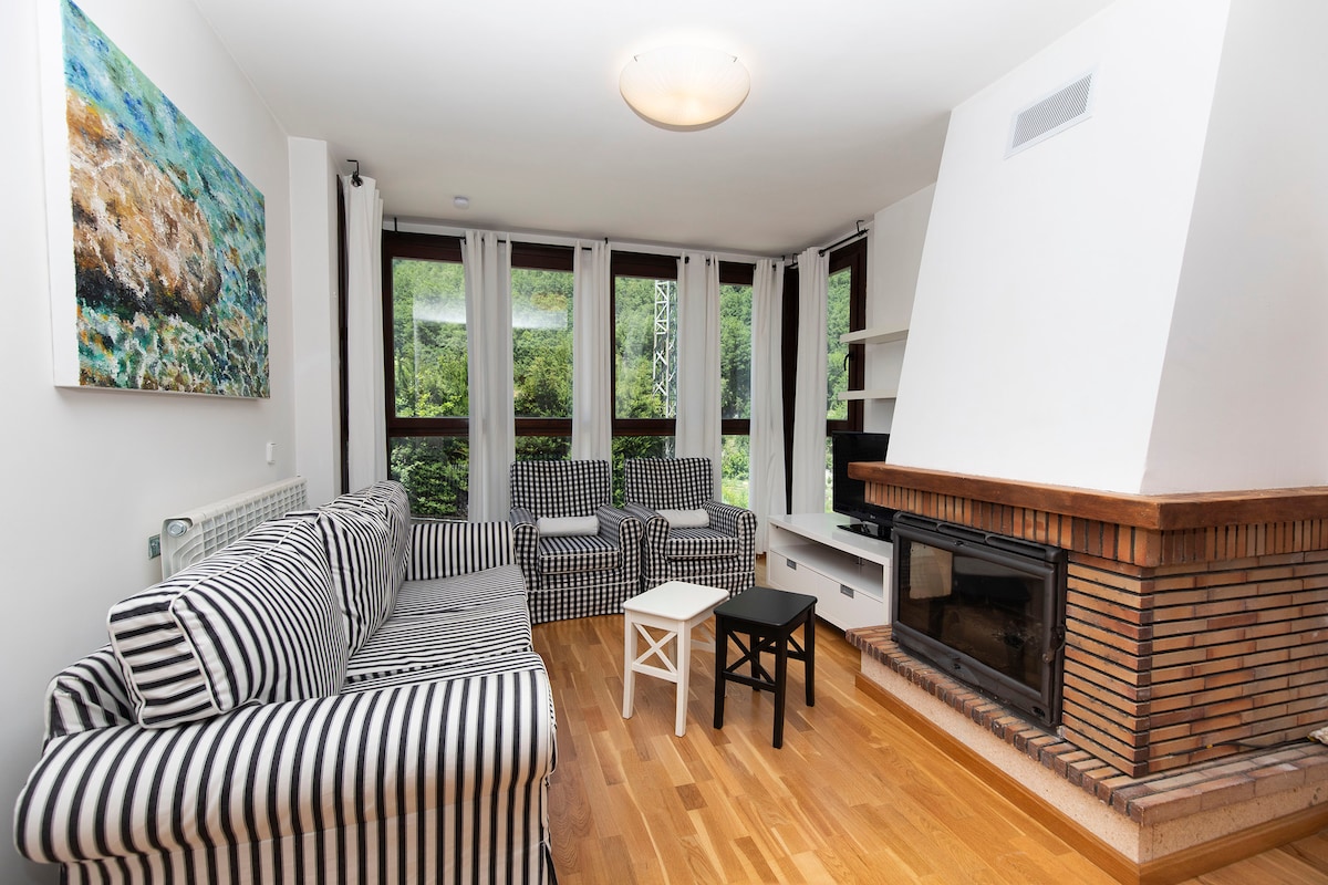 Apartamento acogedor, completamente equipado para familias con niños, con mascotas, parejas y grupos de amigos a los que les encante la tranquilidad, las vistas hermosas de las montañas y el aire fresco del Pirineo. Estamos situados a 10 minutos en coche de Panticosa y 20 de Formigal. Disponemos de una habitacion con una cama de matrimonio, otra habitacion con litera para 3 personas, un salon vinculado con la cocina y un baño. Si buscas un sitio bonito con diseño rustico-moderno, aqui estamos!