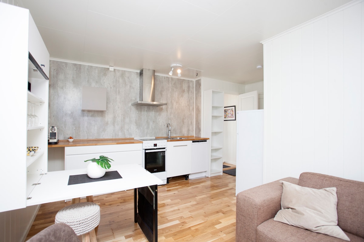 Welcome to our modern two-room apartment in Bodø, featuring ocean views. Free parking in our own private parking house (No RVs). Perfect for up to three - four guests, it includes one double bed and two optional single beds placed in the living room. A brand new apartment from 2023 located within walking distance of both the airport and city center, our apartment combines convenience with high standards, offering the perfect base to explore the area or enjoy a peaceful retreat by the sea.