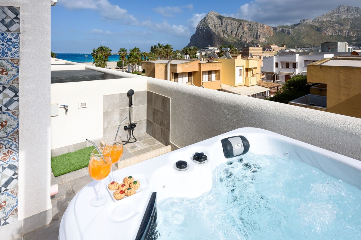 Appartamento a pochi passi dalla spiaggia e dal centro, si trova al piano primo con balcone e terrazza e piscina idromassaggio. Confortevole, luminoso, comodo e di nuova costruzione. Per il vostro relax nel terrazzo troverete comodi lettini , sedie e tavolo per i vostri aperitivi. Di fronte la struttura si trova la splendida spiaggia e il piccolo porto, punto di partenza per le tante escursioni che vengono giornalmente organizzate. Il parcheggio è incluso nella prenotazione.