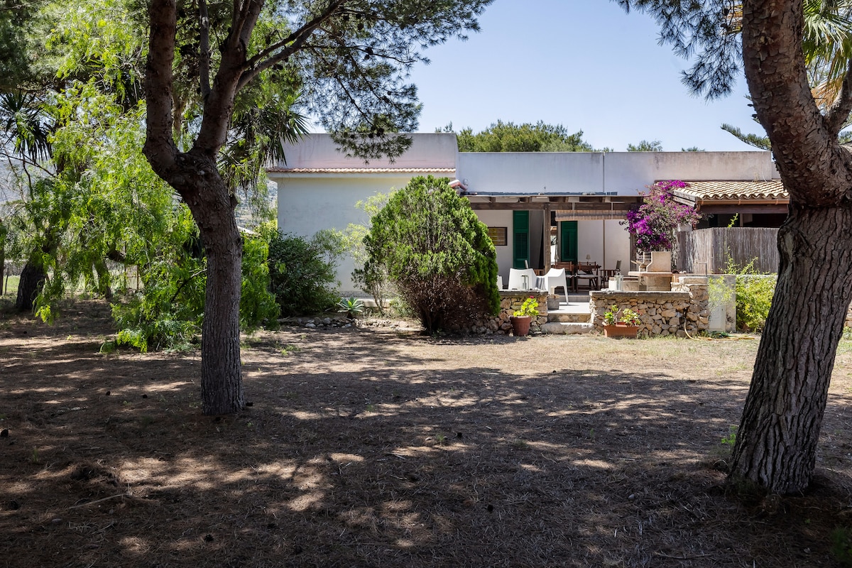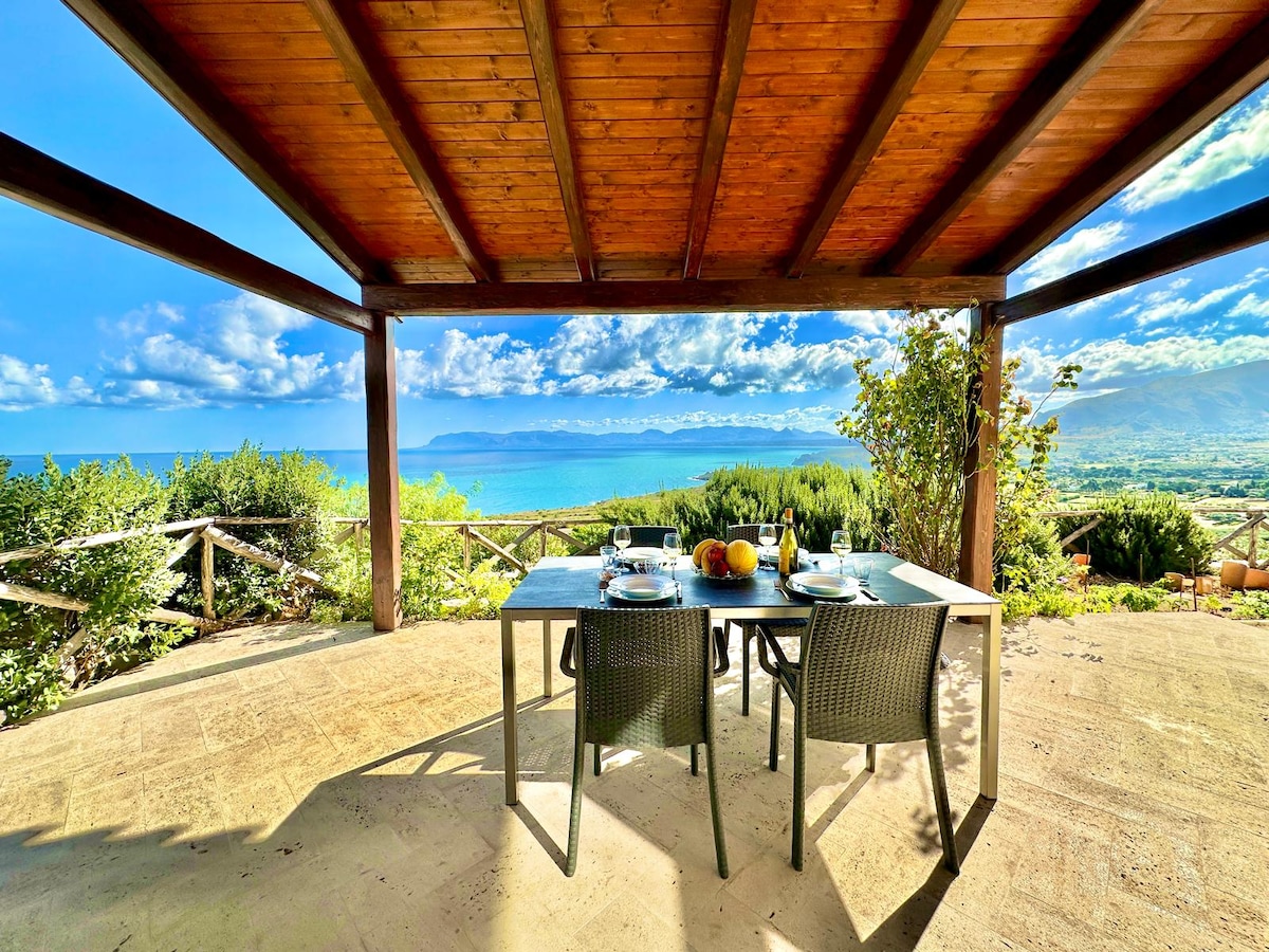 Sulle pendici di Monte Sparacio, un luogo di pace e meditazione che domina il golfo di Castellammare, con un panorama spettacolare sul mare che va da Scopello a Punta Raisi. Luogo ideale come base di partenza per le vostre escursioni, l'assoluta privacy dovuta alla posizione la rende esclusiva e riservata, immersa completamente nella natura circostante. The villa is flooded with sunlight and positivity atmosphere it's amaizing. Posto ideale per coppie o piccole famiglie. Aria condizionata c'è.