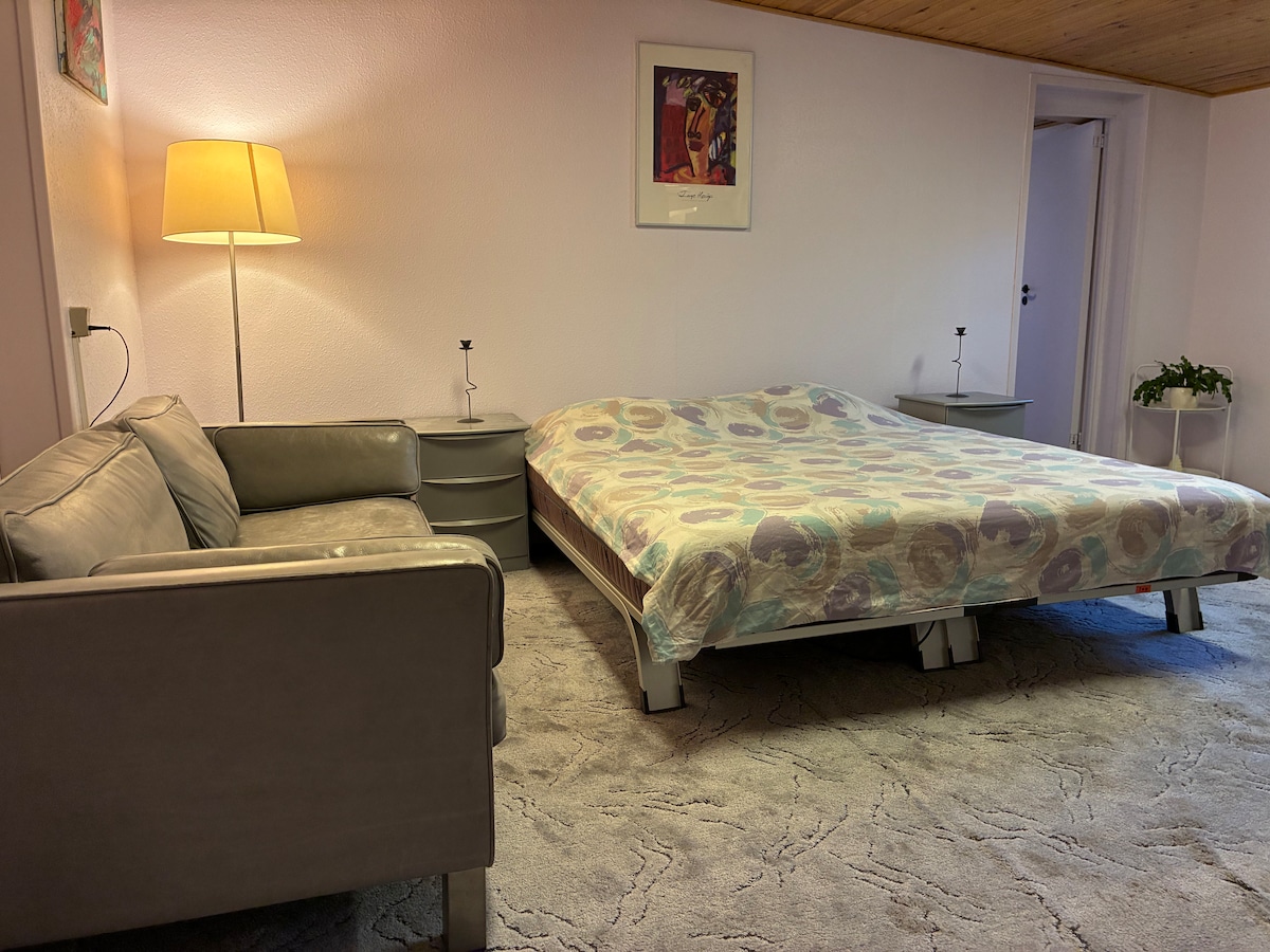 Our location is close to Aarhus University and Aarhus University Hospital and in walking distance from the beautiful beach and forest. Shopping centre and direct bus line to city centre is a few minutes' walk away. Our double room is nice and quiet with private parking, private entrance, studio kitchen and private, separate bathroom. We hope that you will enjoy your stay in our house. Und wir sprechen natürlich auch Deutsch :-)