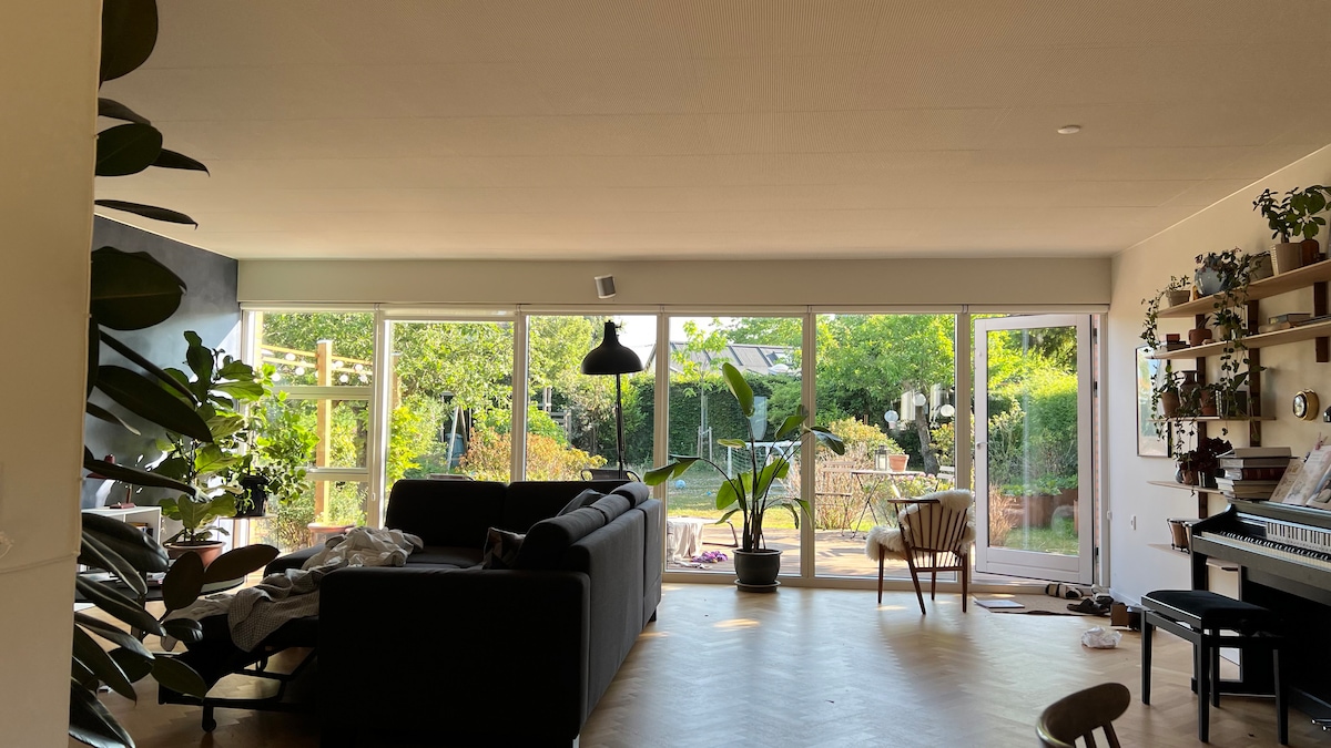 Charmerende villa tæt på skov og strand. 4 km til centrum. Tæt på indkøbsmuligheder, busforbindelser og letbane. 4 værelser; 1 med dobbeltseng; 2 børneværelser med hhv køjeseng (120cm seng i “underkøjen”) samt enkelt seng. Herudover stort nyrenoveret værelse i kælderen med stor dobbeltseng. Hyggelig køkken/alrum med åben forbindelse til stue. Stor og lukket have med trampolin, gynger, fodboldmål og hængekøje samt hyggelig terrasse. Charming villa close to forest and beach. 4 km to the center. Close to shopping, bus connections and light rail. 4 rooms; 1 with double bed and 3quarter bed; 2 children's rooms - one with a bunk bed (space for 2 in the lower height) and one with a single bed. In addition, large newly renovated room in the basement with large double bed. Cozy kitchen / living room with open connection to living room. Large and enclosed garden with trampoline, swings, football goal and hammock and cozy terrace.