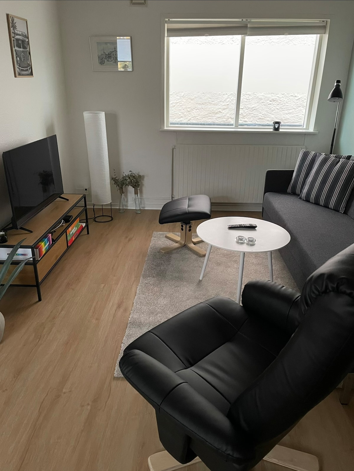 Dejlig lejlighed med stor lys stue, altan, fordelingsgang, soveværelse med kontinentalseng 160x200, dyner i længde 220, badeværelse og køkken. Tæt på skov (cirka 300 m) strand (cirka 3 km) og by (bymidte cirka 5 km fra lejligheden). Stille ejendom med søde naboer. Børnevenligt område med skov lige ved siden af og mange legepladser. Fri parkering foran blokken. Bilen kan ses fra lejligheden. Der er nøgleboks. Håndklæder og sengetøj nyvasket i allergivenligt vaskemiddel.