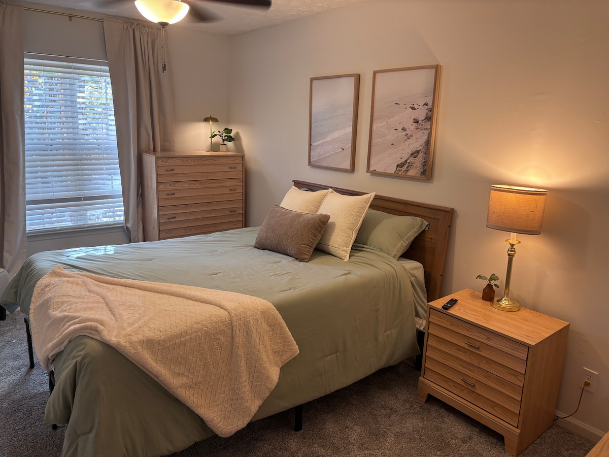 ~Spacious living room w/65" smart TV ~Full-sized kitchen w/all essentials ~Queen-sized bed & walk-in closet ~Office/second bedroom with 2 daybeds ~Shared access to relaxing amenities: Screened veranda Hot tub Pool Firepits Wood-burning fireplace Waterfall On-site licensed esthetician ~Conveniently located minutes from: Shopping & restaurants Hospitals Trilith Studios Airport U.S. Soccer facility 22 miles from Atlanta