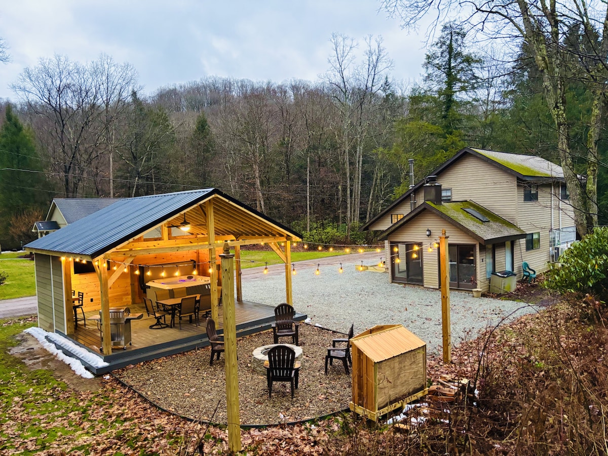 Large Lodge settled on 3 acres w/ a beautiful Stream Running through the woods. This Lodge is perfect for a relaxing mountain vacation. Large enough for the whole family to spread out & have fun. Snuggle up by the fireplace, enjoy a game of pool, head outside, relax in the hot tub, or go fishing! This place has got something for everyone. It’s right off Rt. 40. Minutes from Nemacolin, Ohiopyle, Fort Necessity & plenty of restaurants nearby. 3beds 2 baths (2 queen 1 full) 1 sleeper sofa.
