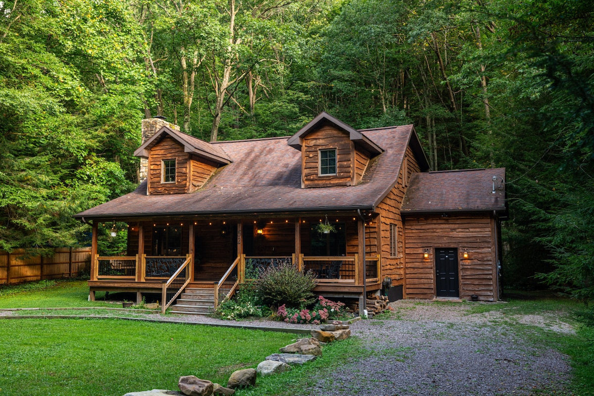 Recently renovated hand-built log cabin with amazing outdoor space. Very cozy and comfortable. A great family hangout space, indoors and out. One bedroom/loft/sofa bed. Close to Nemacolin Woodlands Resort, Frank Lloyd Wright's Falling Water, Ohiopyle, and many outdoor activities including rafting, hiking, biking, and kayaking. There's a smart TV for those rainy or cold days, as well as some games and books. A beautiful spot to simply relax, and a great base location for your next adventure.
