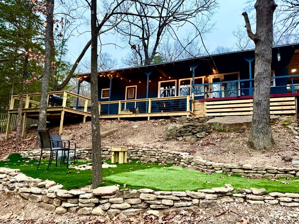 Welcome to Pedal and Perch, a custom-designed and built accessory dwelling cabin just minutes from downtown Bentonville, AR, Walmart HQ, and miles of incredible mountain biking. Enjoy a serene setting that tucks you among the trees and makes you feel like you are staying in your own treehouse. The cabin features a custom kitchen, one bathroom, a queen bed in the loft, a pullout sofa on the primary floor, and your very own outdoor bathtub looking in to the valley below.