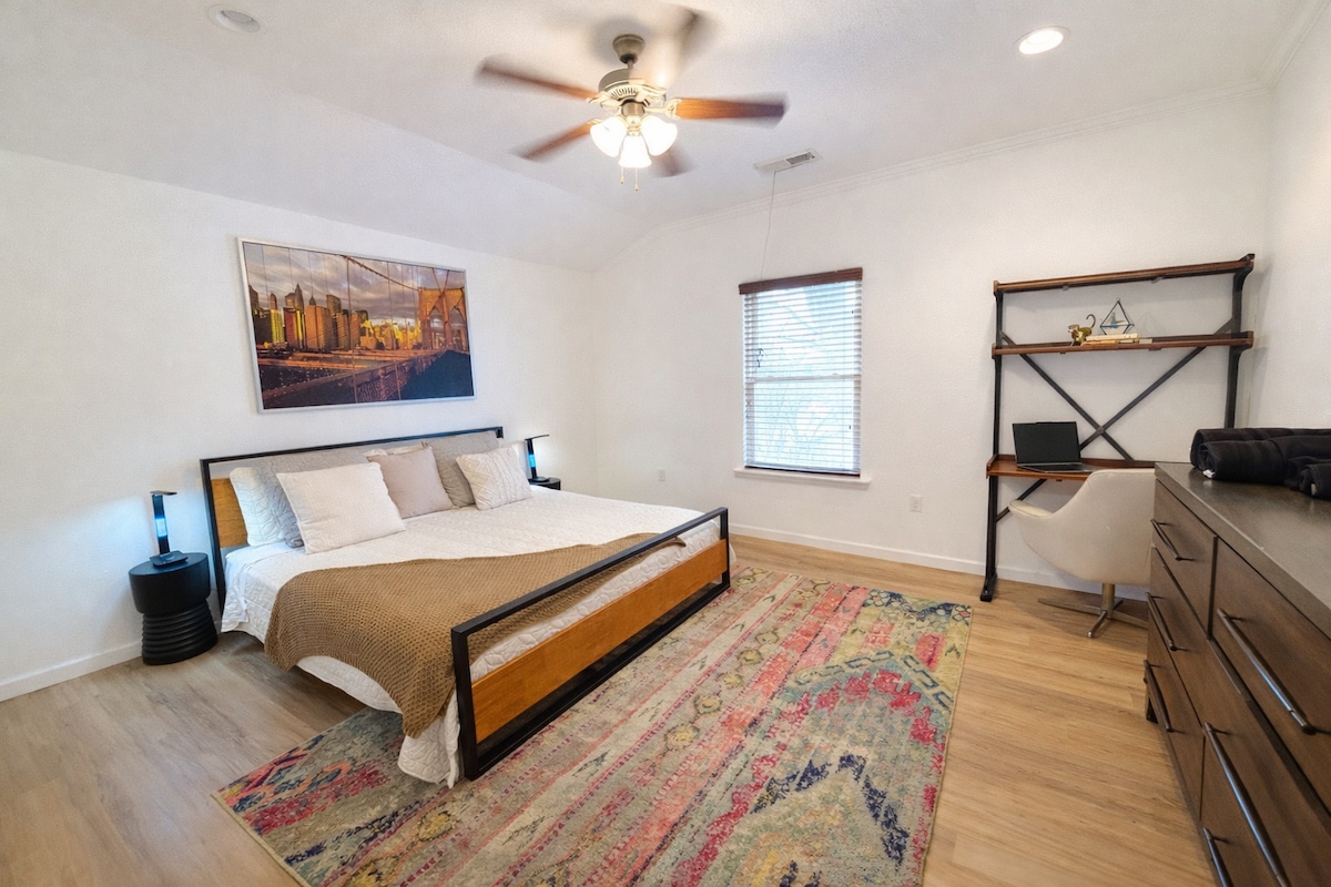 Come experience Bentonville's small-town charm at Tabor Cottage, our 750 sqft guest home. Enjoy the open floor plan, full kitchen with island, cozy living area, spacious king-size bedroom, washer/dryer, and 1.5 baths. Your clean, private retreat awaits, and we're here to assist with anything you need during your stay. We are near bike trails, world class Crystal Bridges museum and amazing restaurants- all within walking distance. Come enjoy the urban life at Tabor Cottage.