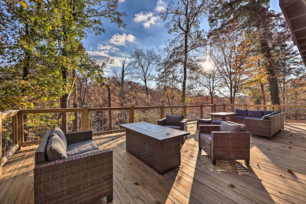 The Treehouse Bungalow was personally renovated and designed by your hosts, Steve and M over the last year. All of the spaces are brand new and exude comfort & peace. From the cozy living room with electric fire place to the spacious deck facing the woods. You will find several, separate areas to make your own. We encourage you to take a break in the soaker tub or grab a book and lounge in the king size bed master. The bike trails, golf, and lakes all around. Come visit NWA and be our guest!