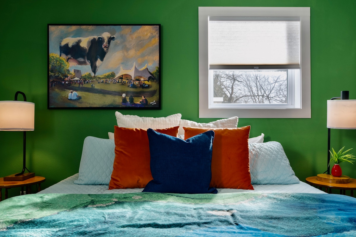 Beautifully renovated, bike in and out as the home is ON the Razorback Greenway, just .5 miles to all that Downtown Bentonville has to offer. Bike or walk to your favorite restaurants, museums, shops, coffee shops, events and more. Enjoy the glow of The Momentary at night out the front door. Home is cozy and sparkling clean, with enough beds for 9 guests to sleep comfortably. This home is the perfect location for your Bentonville getaway.