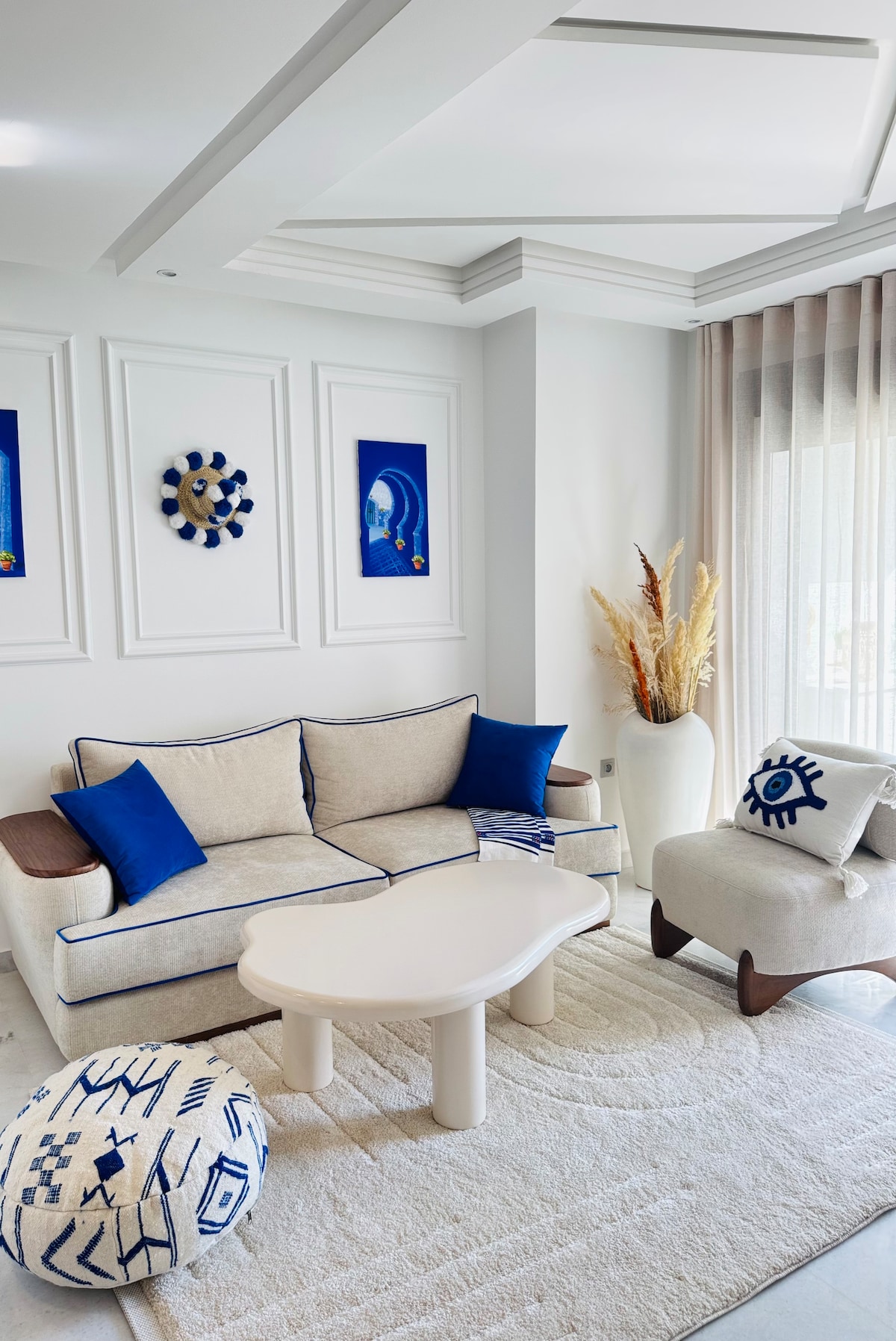 Luxury Penthouse with Panoramic Views of the Bay of Tangier Experience the ultimate in coastal luxury from this stunning three-bedroom, three-bathroom penthouse overlooking the Bay of Tangier, the Old Medina, and the Marina. Inside, every detail is designed for comfort and sophistication from the custom marble waterfall and floor-to-wall marble bathrooms, to the Jacuzzi spa and premium flooring throughout.