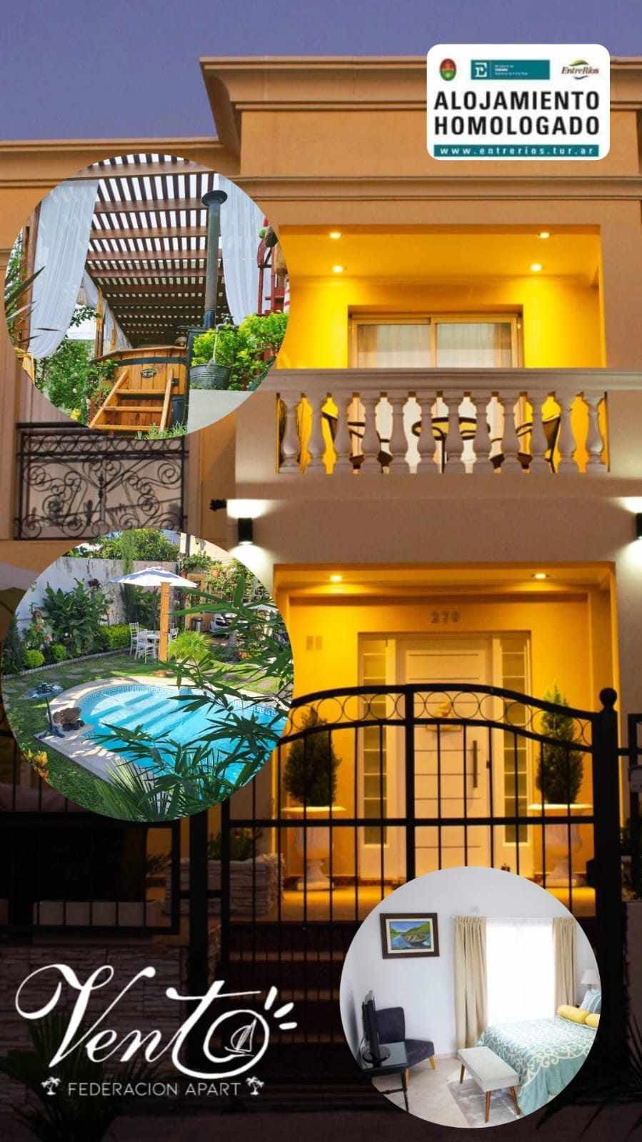 Apart hotel con piscina, parque amplio para recracion con parrilleros fogonero y juegos para chicos ubicados a 1500 metros del parque termal y acuatico de federacion y a pasitos del lago salto grande creando un entorno natural unico y de descanso