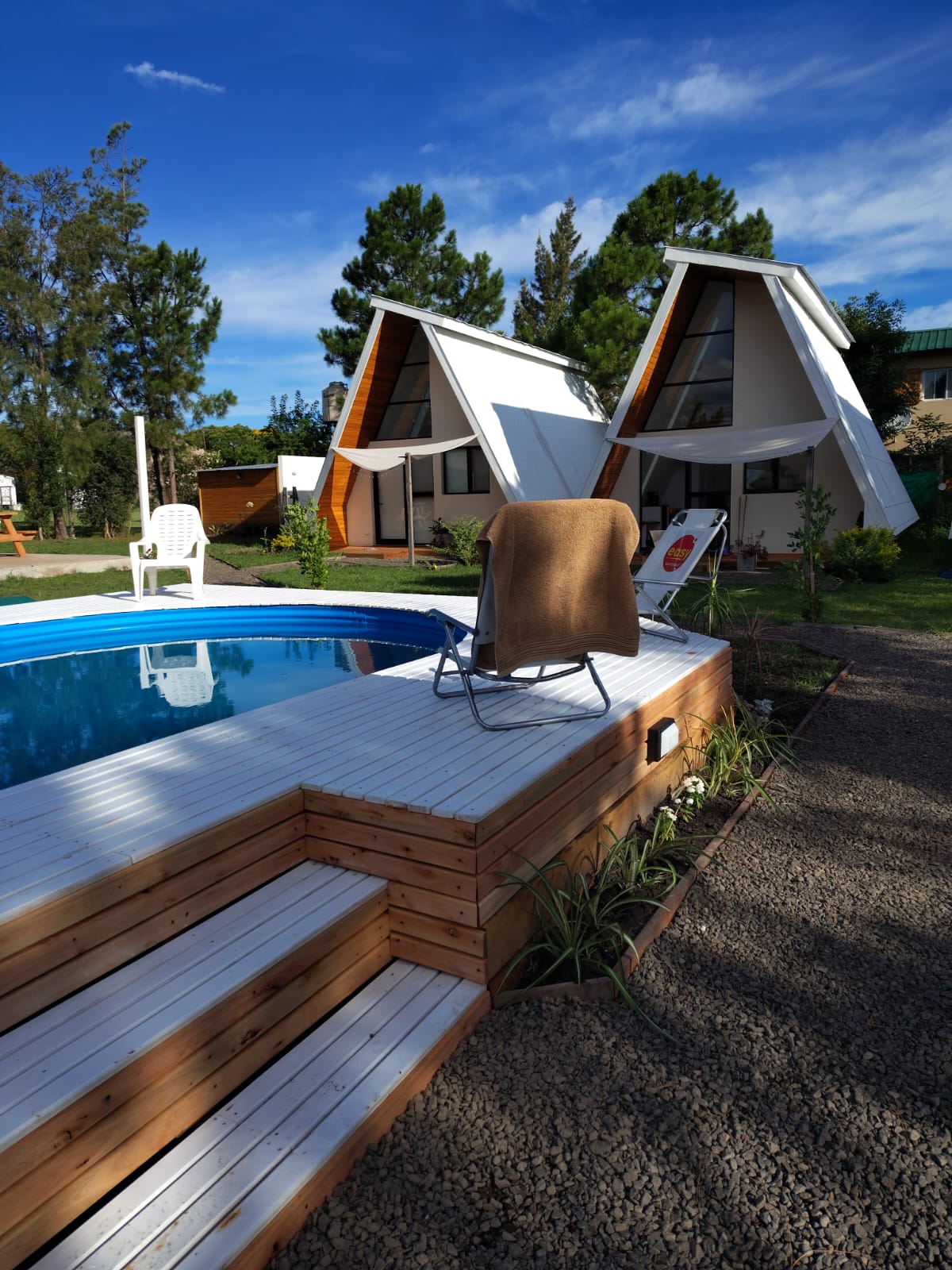 Es un lugar ideal para estar en contacto.con la naturaleza, en un ambiente familiar con piscina, sombrillas y reposeras en un parque bien verde y parrillas individuales