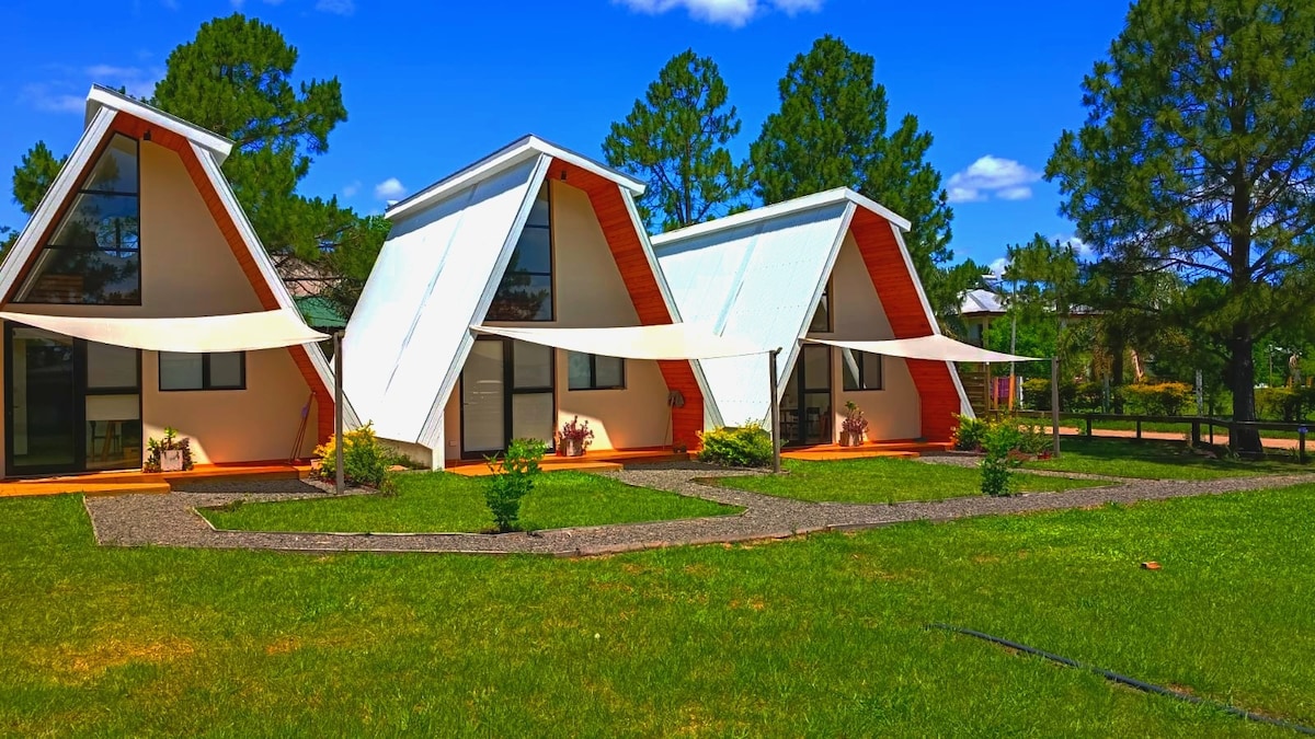 Es un lugar ideal para estar en contacto.con la naturaleza, en un ambiente familiar con piscina, sombrillas y reposeras en un parque bien verde y parrillas individuales