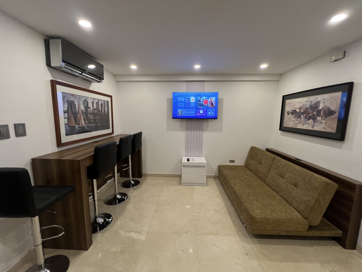 En este espacio te vas sentir como en tu casa, con detalles de buen gusto y con todo lo necesario para una estadia extraordinaria, el apartamento esta recien remodelado y amoblado, Internet de alta velocidad de 250 Mbps. Caminando se puede ir a ir a automercados, farmacias, Centro Comercial, parque infantil y restaurantes. A menos de 5 minutos en carro de tres importantes clinicas privadas y el apartamento ofrece multiples viás de acceso. Puesto Estacionamiento para vehículo mediano no grande.