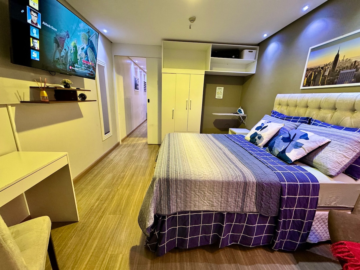 This flat with a lake scenery is ready to make your stay in the capital unforgettable! Situated just 5 minutes from "Esplanada", the apartment offers the perfect balance between centrality and the tranquility of nature by the lake. Additionally, our resort features a range of amenities: two beautiful infinity pools, a jacuzzi, sauna, gym, three coworking spaces, a 24-hour convenience store, 24-hour laundry, and an elegant pier by the lake with a view of the JK Bridge.