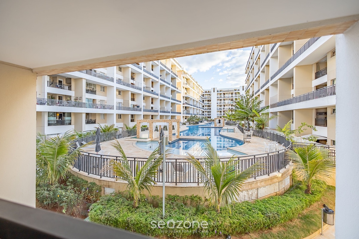 Flat com varanda com vista para área interna do condomínio, mais sossegado e longe do barulho da área de lazer, mobília completa, ar condicionado, cafeteria dolce-gusto, tv lcd com cabos HDMI e antena, apenas canais abertos, geladeira, microondas, armários, louças e roupas de cama e banho. 2 piscinas, academia, conveniência e parquinho. Perfeito para sossego, conforto e a beleza do lago, o prazer de viver em um Resort com tranquilidade e próximo ao centro político, unb e embaixadas.