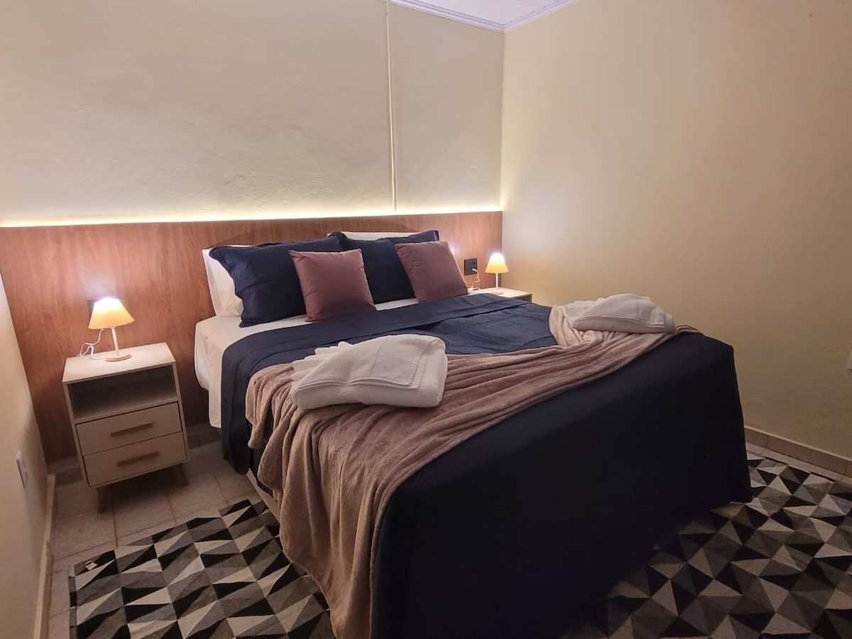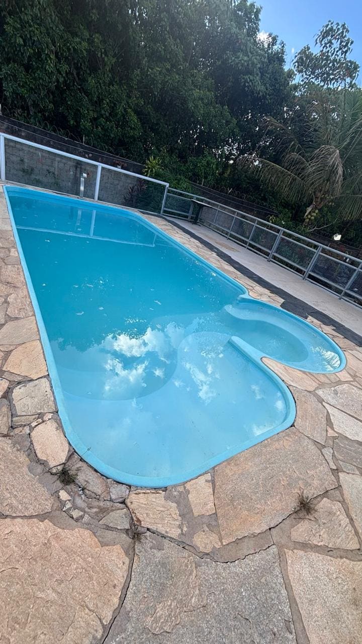Acomodações aconchegantes em condomínio fechado rodeado de natureza, com área de lazer completa, incluindo, piscina, churrasqueira, fogão a lenha, forno de pizza, cozinha completa com utensílios. São 2 quartos que acomodam até 6 pessoas com banheiro conjugado e 2 lavabos que atendem a área lazer (Inclui roupa de cama). É ideal para reunir a família que esteja de passagem, visitando a cidade ou deseja fugir da rotina. Relaxe tirando fotos lindas e fazendo caminhada (acesso a fazenda taboquinha).