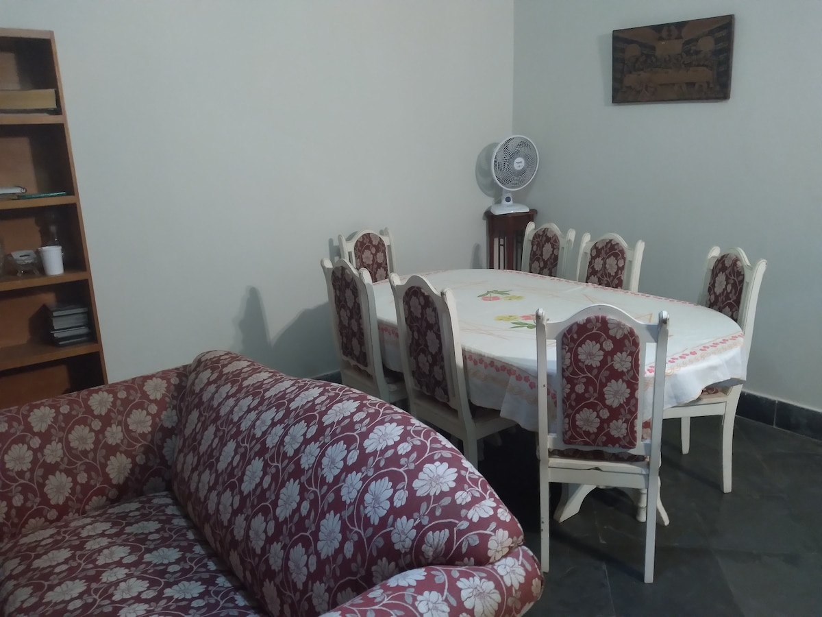 Casa simples para hospedar até 10 pessoas! Quarto tem uma cama de casal e um sofá cama, armário grande com espelho. Segundo quarto cama de casal, armário, escrivaninha e espelho na porta. Sala com Tv 32 polegadas, 2 sofá cama, mesa para refeição. Cozinha com fogão , geladeira, utensílios básico. Área de serviço com tanque de lavar roupa, uma rede. A garagem privativa coberta. Você poderá hospedar até 3 pessoas pelo valor do anúncio e será cobrado um valor a mais por cada hóspede extra.