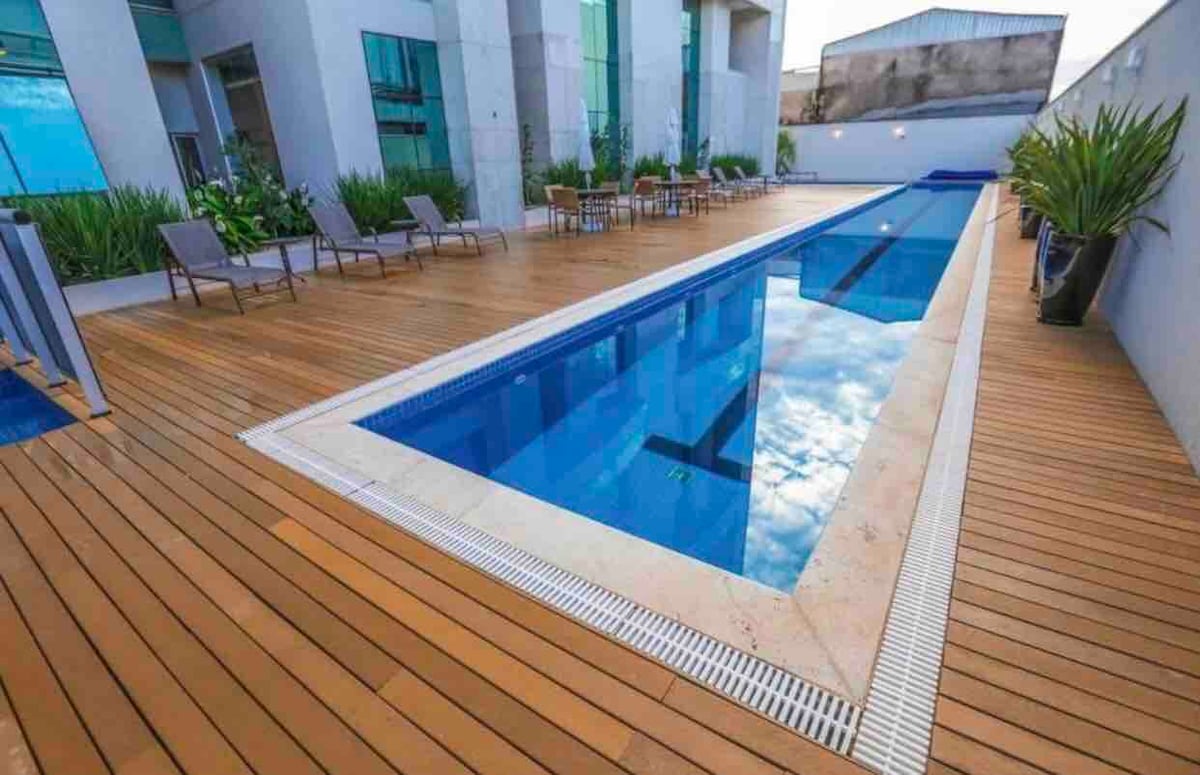 Leve toda a família para um condomínio com cara de clube, com muito espaço para se divertir nas piscinas aquecidas, coberta e piscina praia. Temos uma vaga de garagem coberta. Apartamento com 2 quartos sendo uma suíte com ar condicionado e mais um banheiro social. São duas camas de casal e sala com bicama e Blackout. Podem deixar as malas e aguardar na sala de espera ou ir utilizando a área comum antes do check-in. Bairro: Águas Claras, cidade nova segura e com muitas opções de restaurantes