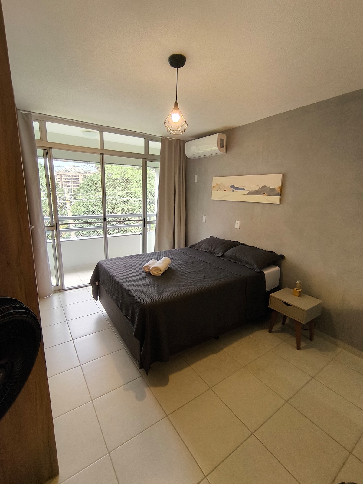 Apartamento aconchegante e bem localizado. Próximo à shopping center, farmácias, supermercados e academia. O local conta com armários planejados com espelho, ar-condicionado, banho com luzes para cromoterapia, secador de cabelo, smart TV, cortina blackout, secador, cama de casal, cobertor, lençol, travesseiros e toalhas de banho e rosto. Cozinha com mesa e cadeiras, filtro de água, geladeira, cooktop, mesa de trabalho, liquidificador, e itens básicos.