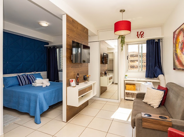 Apartamento de luxo com vista panorâmica e acesso exclusivo ao DF Plaza Shopping. Ambiente sofisticado, totalmente automatizado via Alexa (luzes, ar-condicionado, TV e persianas). Quarto com cama queen e travesseiros ergonômicos; sala com sofá-cama e Smart TV 65". Cozinha gourmet completa e banheiro com amenidades premium. Condomínio com piscina infinita, academia e espaço de trabalho. Wi-Fi ultrarrápido, estacionamento privativo e segurança 24h. Perfeito para casais e profissionais. Toque zen.