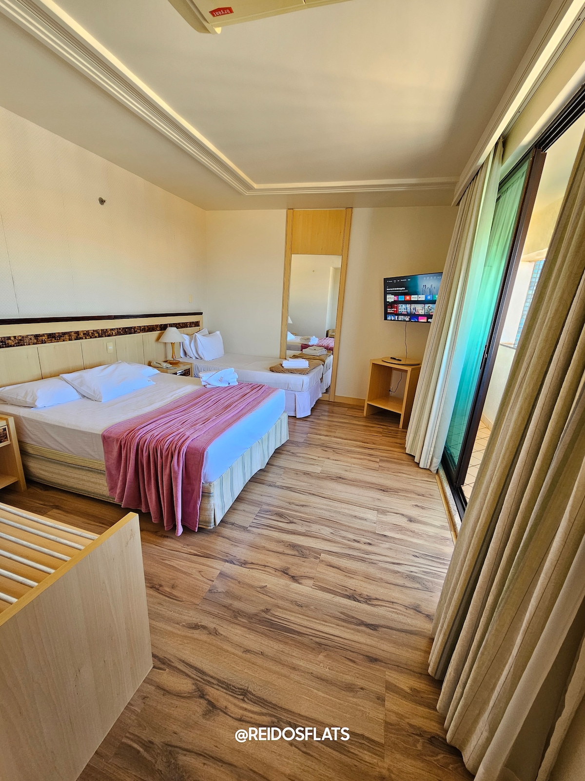 Flat no Garvey Park Hotel com 1 cama de casal e 1 cama de solteiro, banheiro, Smart TV, frigobar, micro-ondas, ar condicionado, enxoval completo e wi-fi. Flat localizado no centro de Brasília, a poucos metros de restaurantes e shoppings. Curta distância da esplanada dos ministérios e demais pontos turísticos da cidade. Prédio entrou recentemente em reformas e a piscina está fechada.
