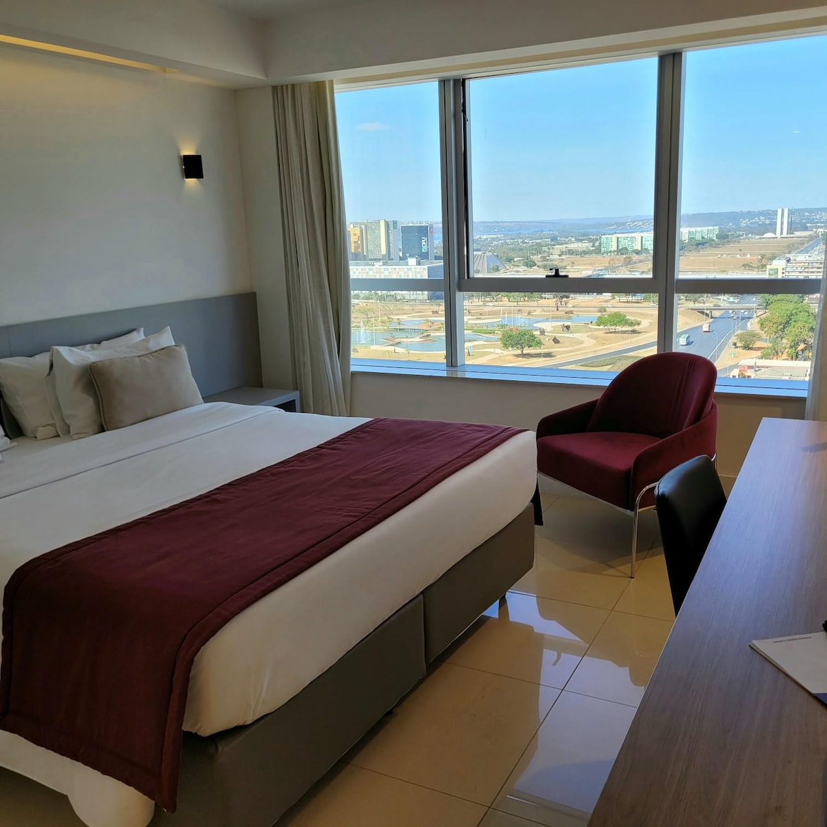 Tranquilo para trabalhar e descansar. A 9min do aeroporto, 4km do lago Paranoá e ao lado do Casa Park e Park Shopping. Estrutura 4 estrelas com 4 piscinas (semi-olímpica é aquecida) sauna e academia. Business center, recepção e restaurante são 24h. Apto tem microondas, fogão, frigobar, filtro de água, cafeteira, panelas, liquidificador, sanduicheira e utensílios. Banheiro tem secador de cabelos e barra de segurança. Cobertor extra, ferro e tábua ficam no armário. Wi-Fi muito bom e a Tv é Smart.