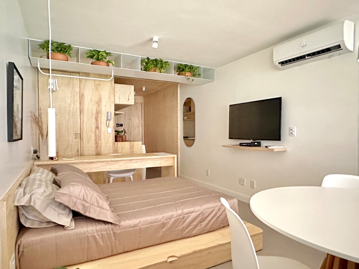 Aproveite esse espaço calmo e cheio de estilo com vista para o verde.