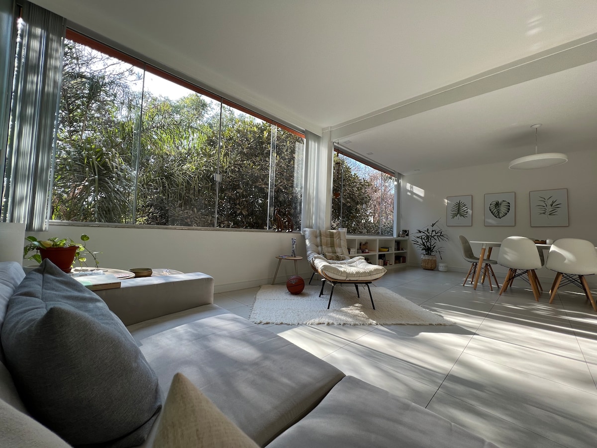 Apartamento reformado, projeto do escritório Mínimo Arq (@minimo arq br). O espaço amplo e integrado, com excelente iluminação e ventilação naturais, proporciona conforto e bem-estar. Com estilo minimalista, privilegia os elementos essenciais. A espaçosa varanda, sempre fresca, com vista para área verde permanente, foi restaurada, mantendo a originalidade do prédio. Para pessoas que apreciam um ambiente moderno, confortável, limpo e completo. Adequado para estadias curtas e longas.