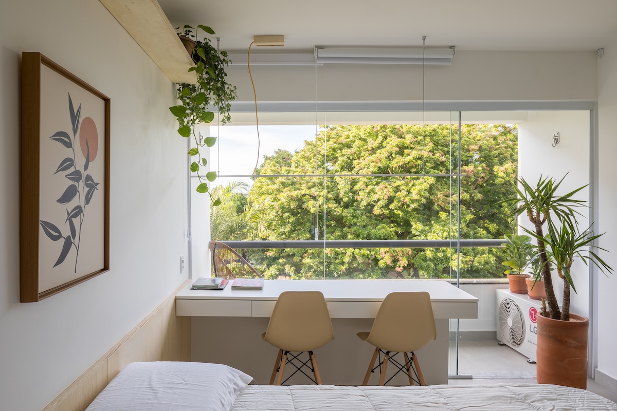 The Suite, spacious and luxurious, has recently been renovated based on a project by one of Brasília's top architecture firms, @minimo arq br. With windows that allow generous natural light to enter, you will be treated to a stunning view of the vast green area that extends to the open horizon, a typical characteristic of our beloved city.