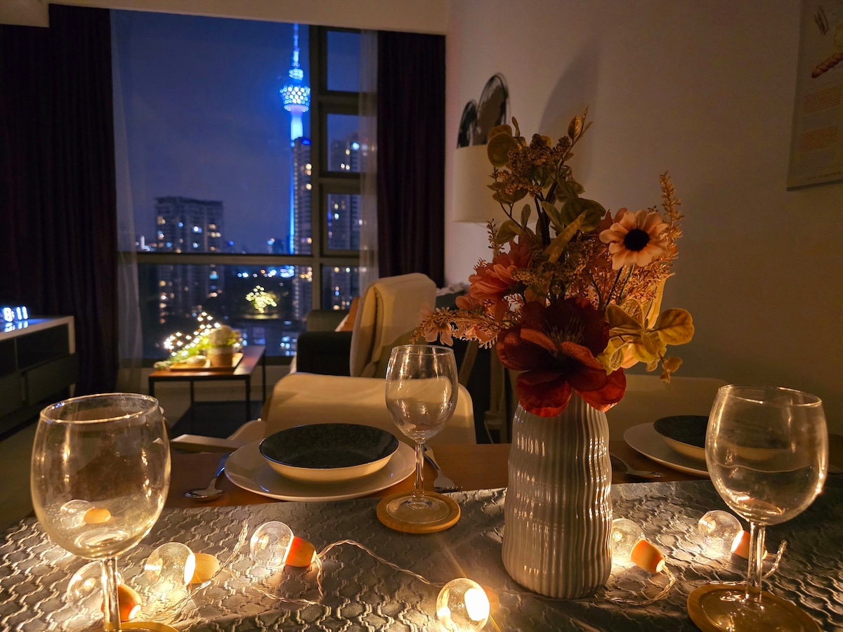 Why stay at The Elegance Suite at Lucentia Residence - the best views of KL - beautifully decorated with a fun spirit - centrally located - near public trans - fast wifi - 2 TVs with Netflix, Apple TV, Prime Video - 2 gorgeous pools - family friendly with baby crib & high chair - gym, pool table, BBQ pits, piano - garage parking - sleeps 6 - LalaPort Shopping Mall & the WOW entertainment street are attached - grocery, drug store, and many restaurants are attached - movie theatre GSC
