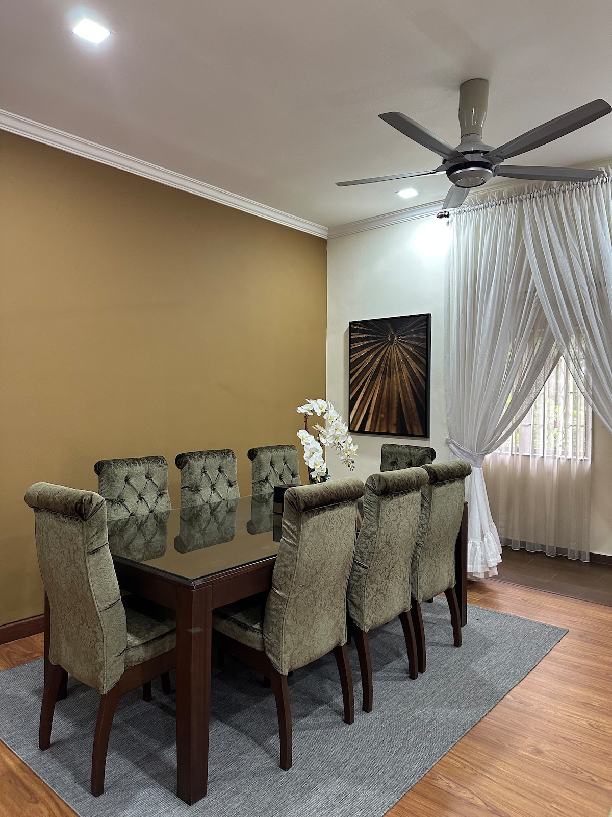 This is s a double storey landed house located in Taman Mutiara Cheras Kuala Lumpur with 4 bedrooms, 3 bathrooms, dining room, kitchen and living hall that can accommodate up to 16 guests. The car porch can fit 4 cars. This house is located nearby Tmn Mutiara MRT station/Ekocheras & Leisure Mall/convenience stores & restaurant (3 min. walk). Strictly no wedding ceremony/party/buffet/catering/BBQ/event/video or film shooting in this house. This house is only meant for stay or small gathering.