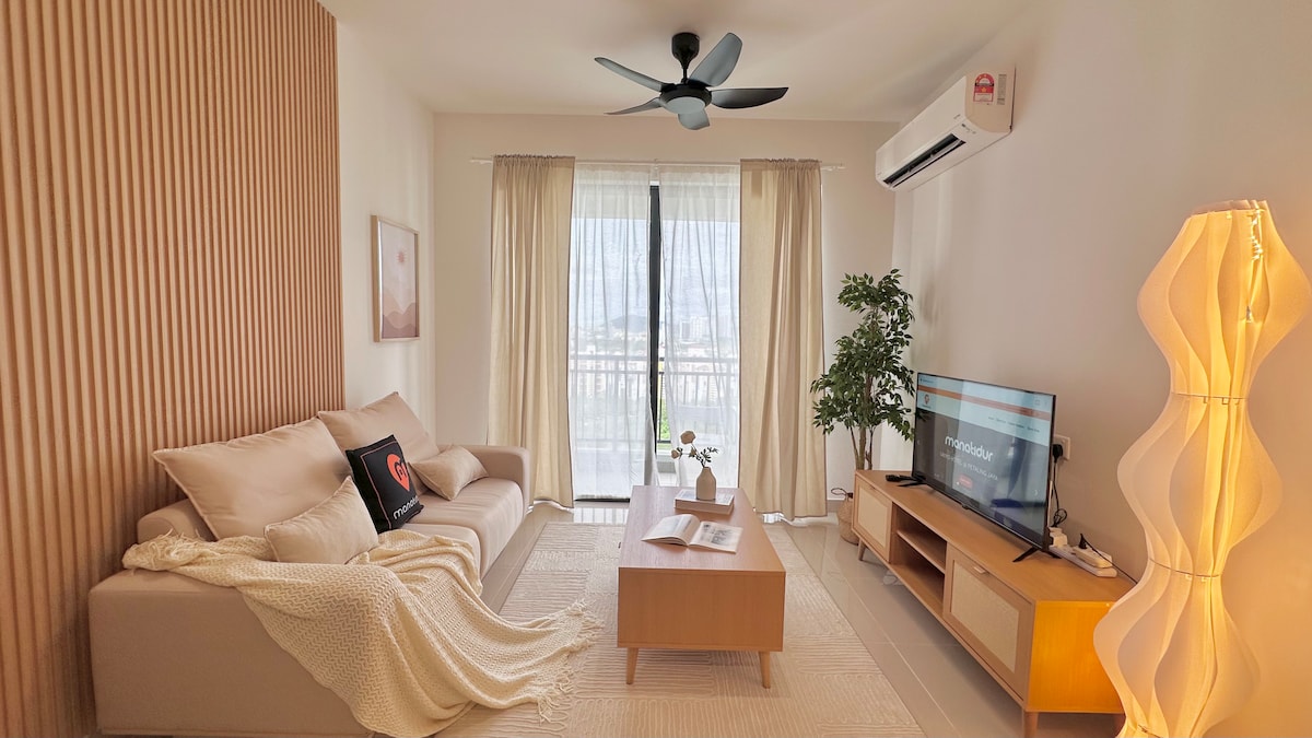 Enjoy Batu Caves views and lush greenery from this cozy, nature-inspired home — just 5 mins to Batu Caves and 15 mins to KLCC. Walk to the KTM station, or catch the feeder bus to the MRT right outside. Relax with coffee on the balcony, explore nearby lakeside trails, and return to a peaceful retreat with playful panda touches. Free parking included.