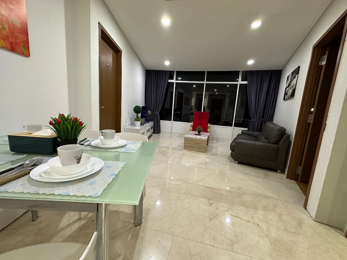 We offer you this 3 Bedrooms Suite of 800sqft in the Heart of KLCC. Unbeatable Location with 2 KING beds and 2 SINGLE beds. Perfect Home for family Staycation. Our Suite comes with: - SMART TV (Youtube. Astro, and many others Channels) - Washing Machine and Dryer - Equipped Kitchen - Free parking space for 2 cars Our Suites is: - 50 meters to EQ Hotel Plaza - 5/7 min walk to KLCC (Petronas Towers) - 3/5 min walk to KL Convention Center - 10/12min walk to Pavilion - 150 meters to McD