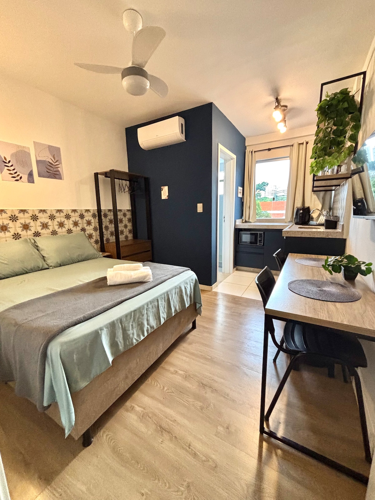 Apartamento moderno, 32m2, localizado no melhor ponto do Sion. Cozinha prática com frigobar, cooktop, TV (canais abertos/Netflix), ar condicionado, secador de cabelo, chaleira elétrica e internet. Zona Sul, ao lado da Praça JK e Avenida Bandeirantes, em frente a um Supermercado. Rooftop do prédio com academia, sauna, piscina, área de convivência e cozinha comunitária (água, máquina de gelo). Limpezas sob demanda disponíveis. Prédio seguro com portaria 24h. *Não há garagem inclusa.