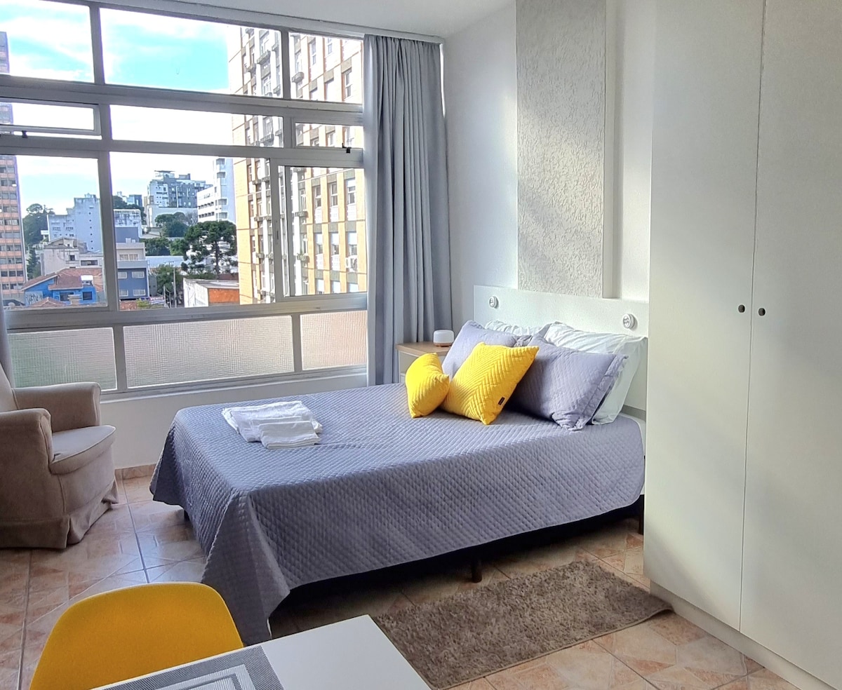 Hospede-se em um dos lugares mais charmosos de Curitiba. Ótima localização central, próximo a mercado, banco, restaurante, shopping, Passeio Público, UFPR, Teatro Guaíra, fácil acesso para qualquer região da cidade. Não perca a vista panorâmica do 31º andar (terraço), tudo isso com total segurança, portaria 24h. Com garagem inclusa!