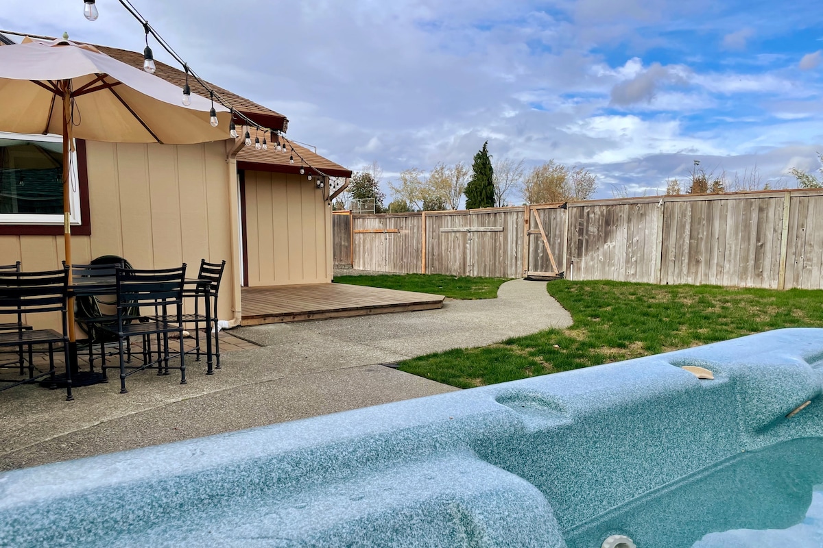 Looking for a relaxing, zen vacay, or family quality time? You will enjoy peaceful mornings by the shimmering lake, breathtaking sunsets over Mt. Rainier, kayaking adventures, and cozy nights under the stars by the fire pit. Unwind in the hot tub, grill on the deck, and relax in our spacious 4-bedroom, 2.5-bath retreat with AC, jacuzzi, game room, kayaks, BBQ grill, and family amenities. Lakefront Nest is your perfect escape, just a 30-min short drive from Seattle/Bellevue!