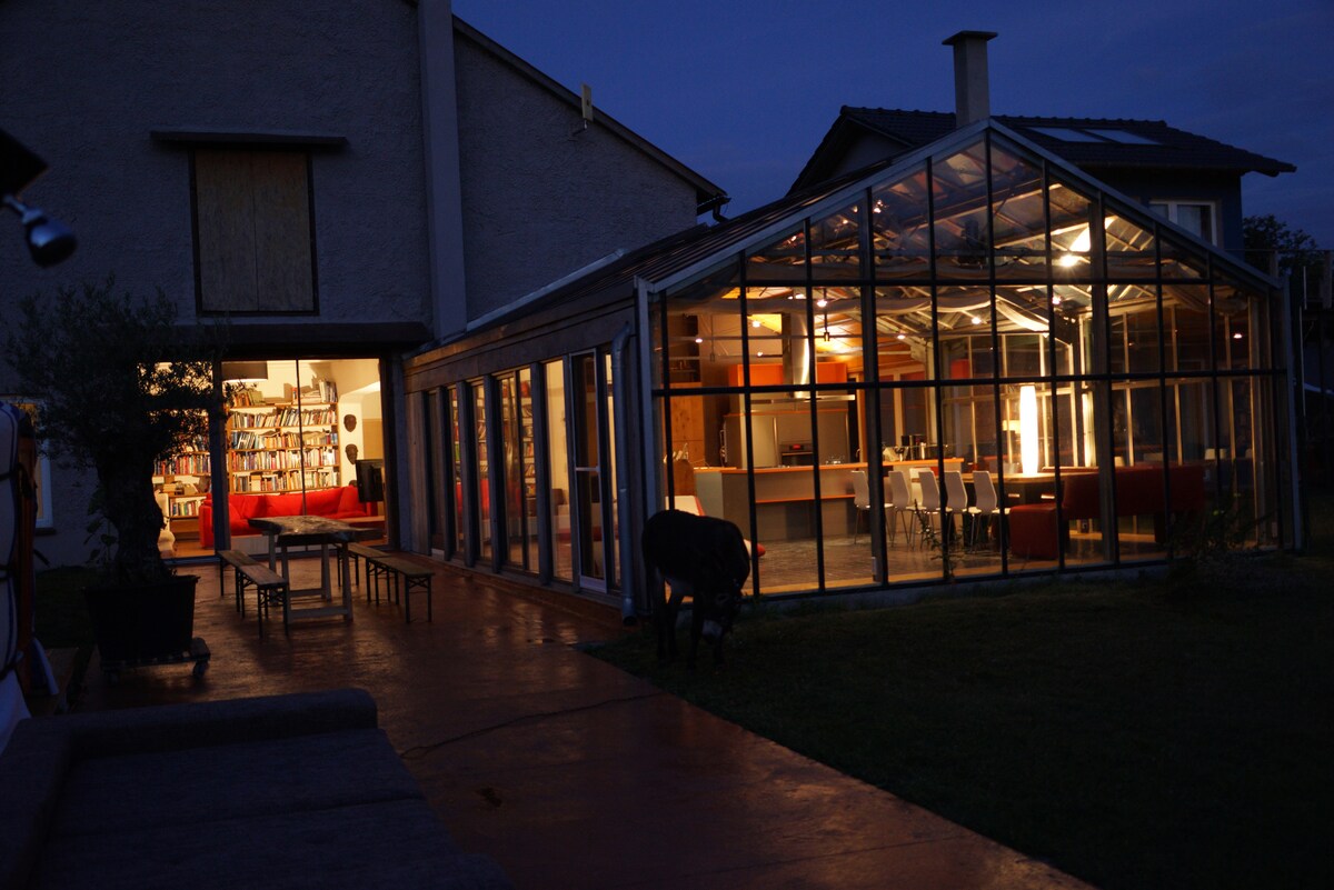 This spacious 230 sqm country home with its lovely garden is only 150 metres from lake Schwielowsee in the picturesque Havelland area west of Berlin. At the same time you are only a 30 minute car ride away from the Ku'damm, a main shopping area in West Berlin and around 15 minutes from Potsdam. Perfect to combine relaxation in the garden or around the lake and a visit to vibrating Berlin! It's a treat even in the winter - staying by the fireplace, looking into the garden...