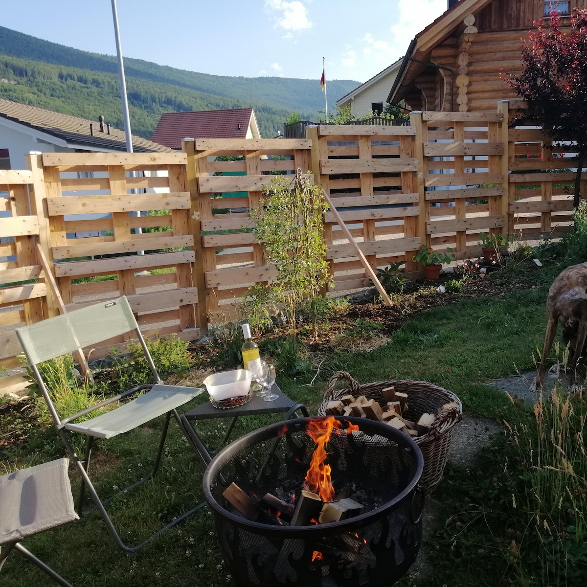 Cosy 30m2 flat in the groundfloor of a house with garden +15m2 terrace in front of the house. 15 minutes to Basel Airport - TV 42 inch, DVD player + lots of DVDs - kitchen: micro-wave/oven, hot plates, fridge, freezer, dishwasher, Nespresso, kettle... - Possibility to have breakfast (coffee, tea are free, orange juice, crackers, butter, jam, honey, cereal bar and dry fruits) - Big wardrobe - Bed made upon arrival - Towels and all basic products (oil, spices,... are provided - Free parking space