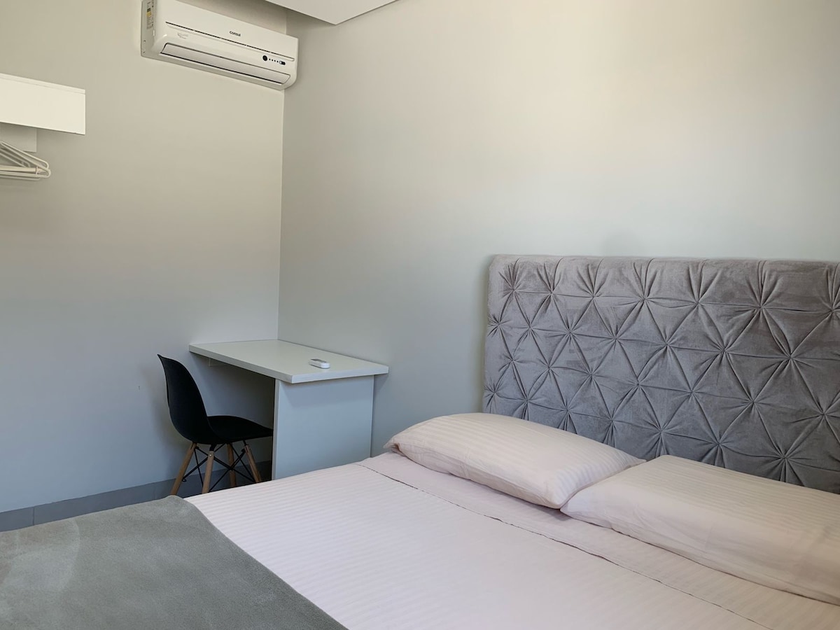 Hospedagem que alia conforto, segurança e charme no centro nobre de Campo Grande. Localizado em frente ao quartel da Polícia do Exército, o Studio Premier possui todo conforto para uma hospedagem a curto ou médio prazo com a praticidade de uma mini-cozinha toda equipada. Ar condicionado split nos dois quartos, wi-fi e tv a cabo disponível. Possui garagem privativa.
