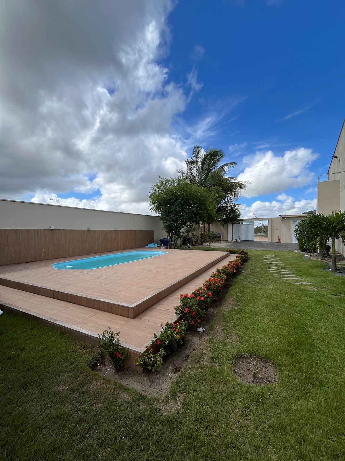 Leve toda a família a este ótimo lugar com muito espaço para se divertir, com piscina e área gourmet A casa vem com todos os utensílios, lençóis e toalhas. Garagem para veículos pequenos e médios Sala de estar e Jantar 4 quartos (1 suíte casal com ar/ 1 casal com ventilador/ 1 solteiro com ventilador + colchão/ 1 suite externa com lavabo e cama de casal) 2 Banheiros Cozinha Lavandeira Área gourmet Piscina (consultar)