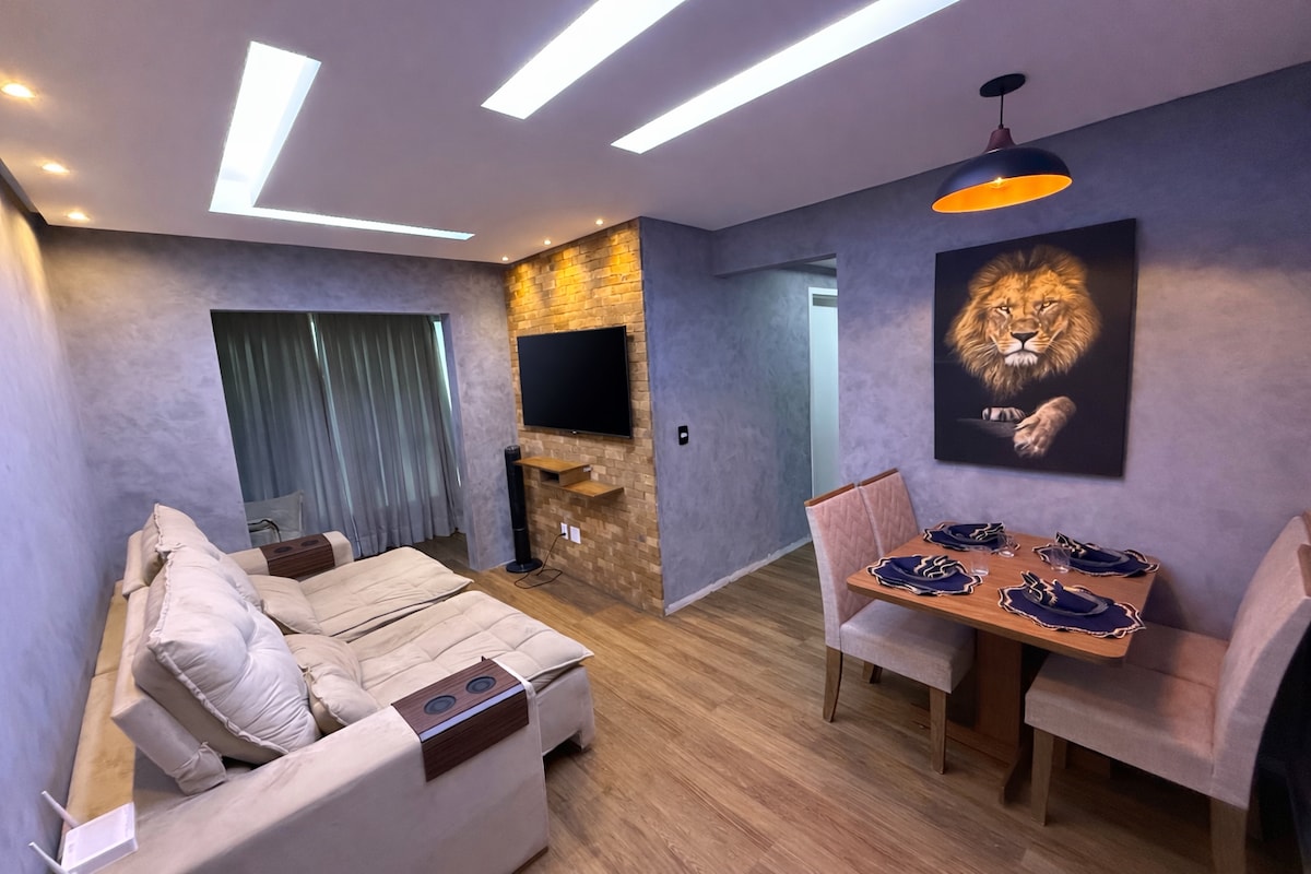 Seu refúgio de luxo no SIM! Lazer e Pé no Shopping Apartamento completo em condomínio com localização imbatível, perto de Shopping, academia 24h, mercado e delicatessen Oferecemos conforto: Todos os quartos climatizados, varanda, com Wi-Fi rápido. Cozinha completa, lavanderia com máquina de lavar O condomínio: Piscina, parque infantil, quadra esportiva, mercado de autoatendimento e estacionamento seguro MELHOR CUSTO-BENEFÍCIO:Não cobramos taxa de energia nem limpeza! Check-in e portaria 24h