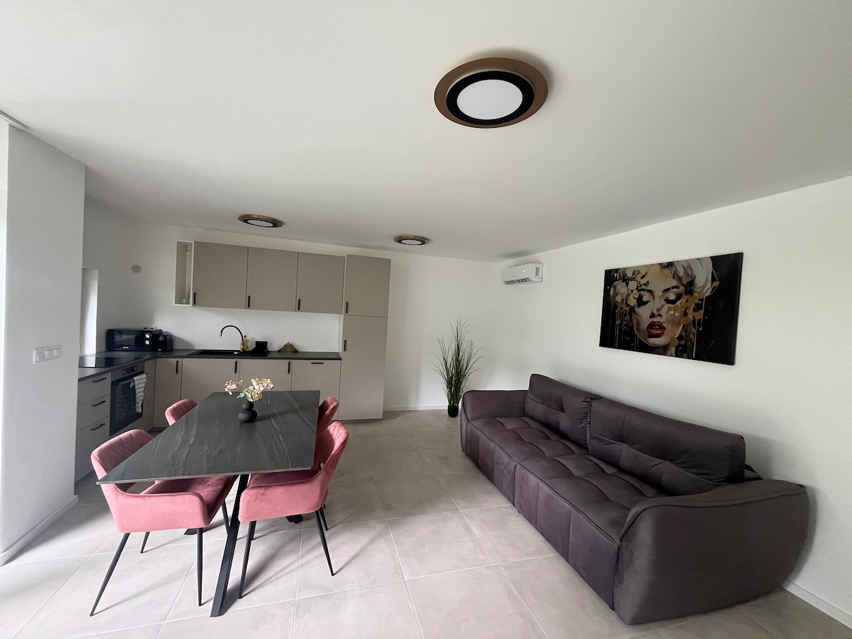 Az apartman egész évben várja a pihenni vágyókat Siófokon. Új építésű apartman, klíma, kandalló, zuhanyzós fürdőszoba, külön wc, amerikai konyhás nappali, jól felszerelt konyhával, hálószoba, okos Tv, WiFi, szauna, kerti zuhany, merülő dézsa. Grillezési lehetőség, parkolás az udvarban. Az apartman 5 perc sétára van a strandtól, kisbolttól, éttermektől. Központ kb. 10 perc séta. Júl., aug.-ban min. 5 éjszaka foglalható, szezonon kívül min. 3. Max. 4 fő. Érkezéskor 50.000 Ft kaució fizetendő.