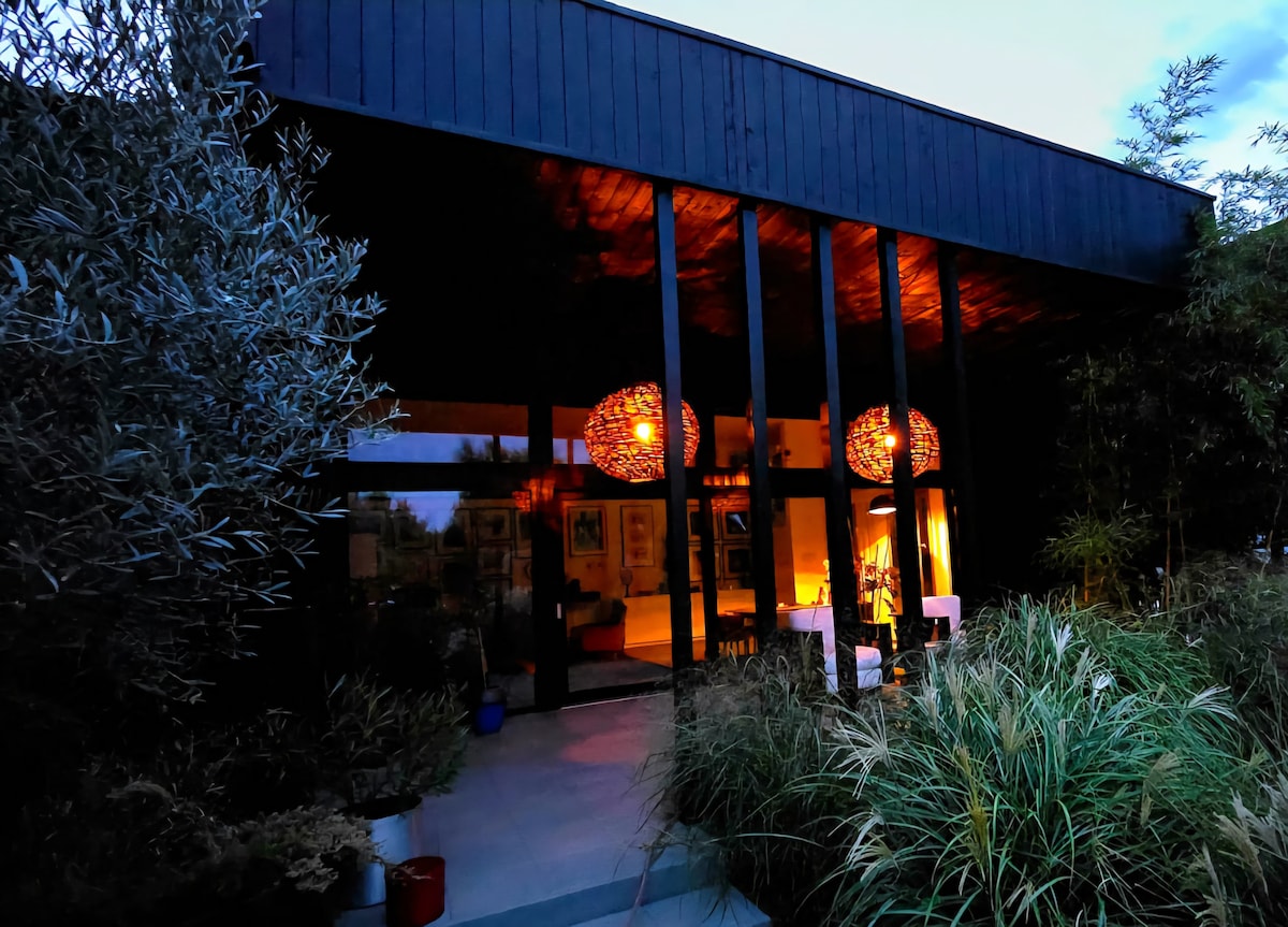 带按摩浴缸和泳池的Lime周末屋
