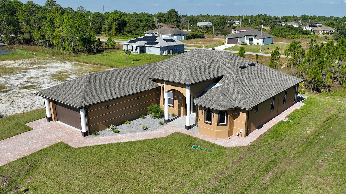 Your private modern studio oasis awaits! Separate entrance, designated parking, queen bed, and loveseat pull-out make it ideal for couples, solo travelers, or small families. Relax on the patio or cook light meals in the kitchenette with induction cooktop, air fryer, fridge, and coffee bar. Minutes from Ave Maria, Naples beaches, trails, dining, Great Wolf Lodge, and local shops—comfort and convenience in Golden Gate Estates!