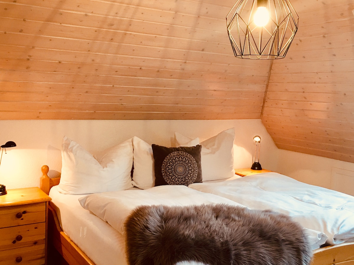 Perfekt für 2: Unser gemütliches Apartment "Blumenwiese" im Dachgeschoss unseres Ferienhauses. In Titisee-Neustadt wird Kurtaxe erhoben. Diese Kurtaxe ist nicht im Buchungspreis enthalten und muss während des Aufenthaltes beglichen werden. Erwachsene: 3,00 € pro Person pro Nacht Kinder ab 6 Jahren: 1,60 € pro Person pro Nacht