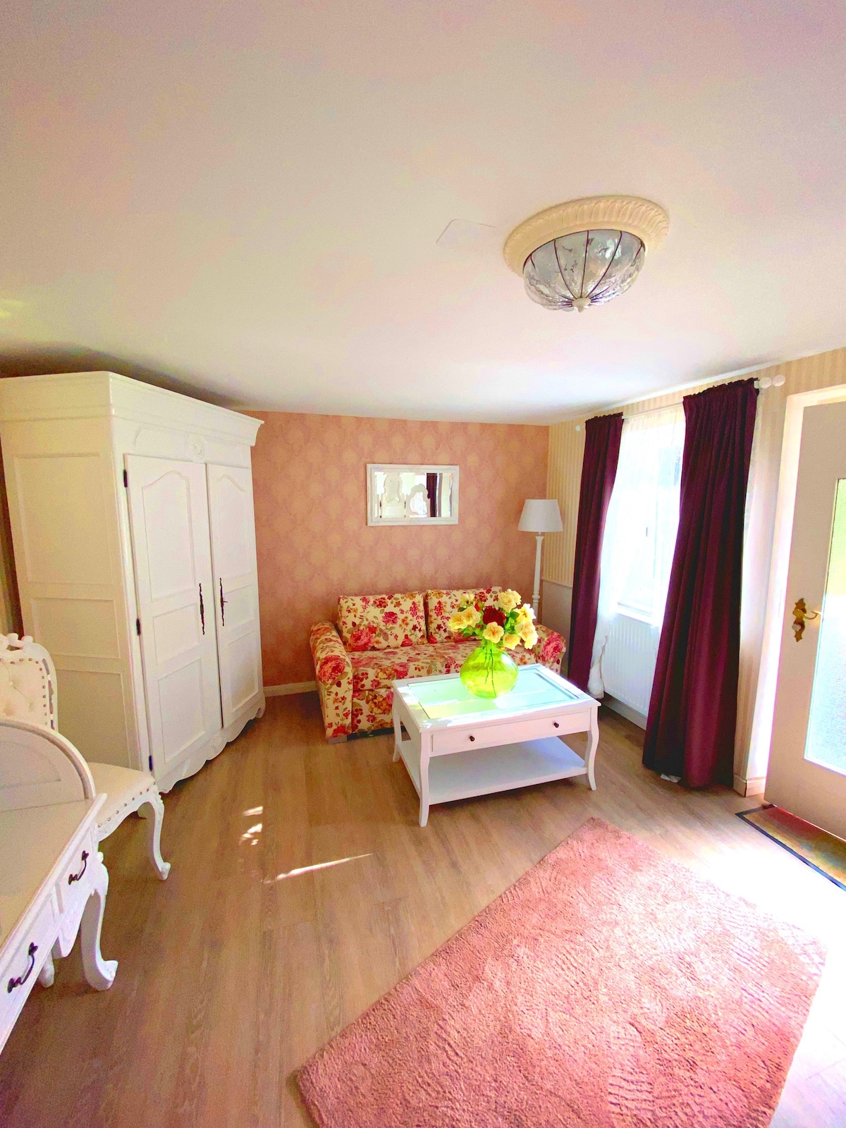 Unser gemütliches, neu renoviertes Appartement liegt in ruhiger Lage im Nebengebäude, gegenüber des Hauptgebäudes. Es gibt einen gemütlichen Wohnraum mit Flachbildfernseher, einem Bett in Größe 120x200 für eine Person, mit der Möglichkeit eines Zustellbettes für eine weitere Person. Für die Aufbewahrung einiger Lebensmittel gibt es einen kleinen Kühlschrank, eine Kochgelegenheit mit einem kleinen Ofen und einer Herdplatte. Es ist ein separates Bad mit Dusche, Fön, WC und Waschbecken vorhanden.